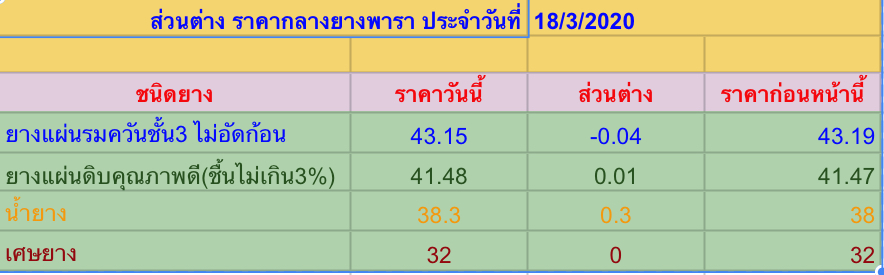 > ส่วนต่าง ราคากลางยางแผ่น น้ำยาง ยางแผ่น ประจำวันที่ 18/3/63