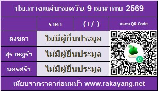 ส่วนราคาเฉลี่ยยางแผ่นรมควันคุณภาพดีวันนี้ ไม่มีผู้ยื่นประมูล