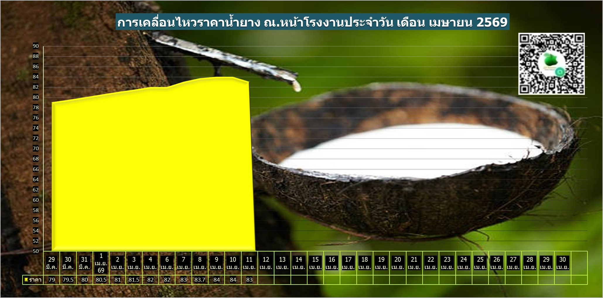 สรุปราคาน้ำยางโรงงานและลานท้องถิ่นทั่วไปประจำวัน เสาร์ ที่ 11 เมษายน 2569