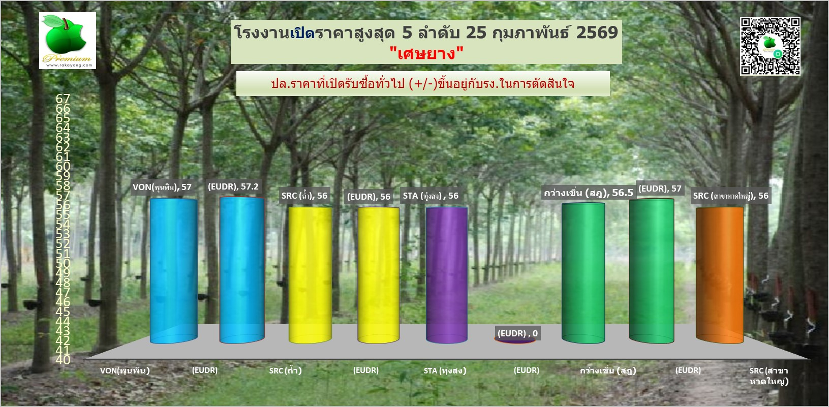 สรุปราคายางแผ่นรม/ดิบ เศษยาง เครฟ โรงงานทั่วไปประจำวัน พุธ ที่ 25  กุมภาพันธ์  2569