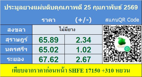 ตลาดกลางประมูลยางนครศรีฯ(จันดี) 65.02 บาท/กก.  ราคาเพิ่มขึ้น   https://rakayang.net/vip/view.php?idr=31061