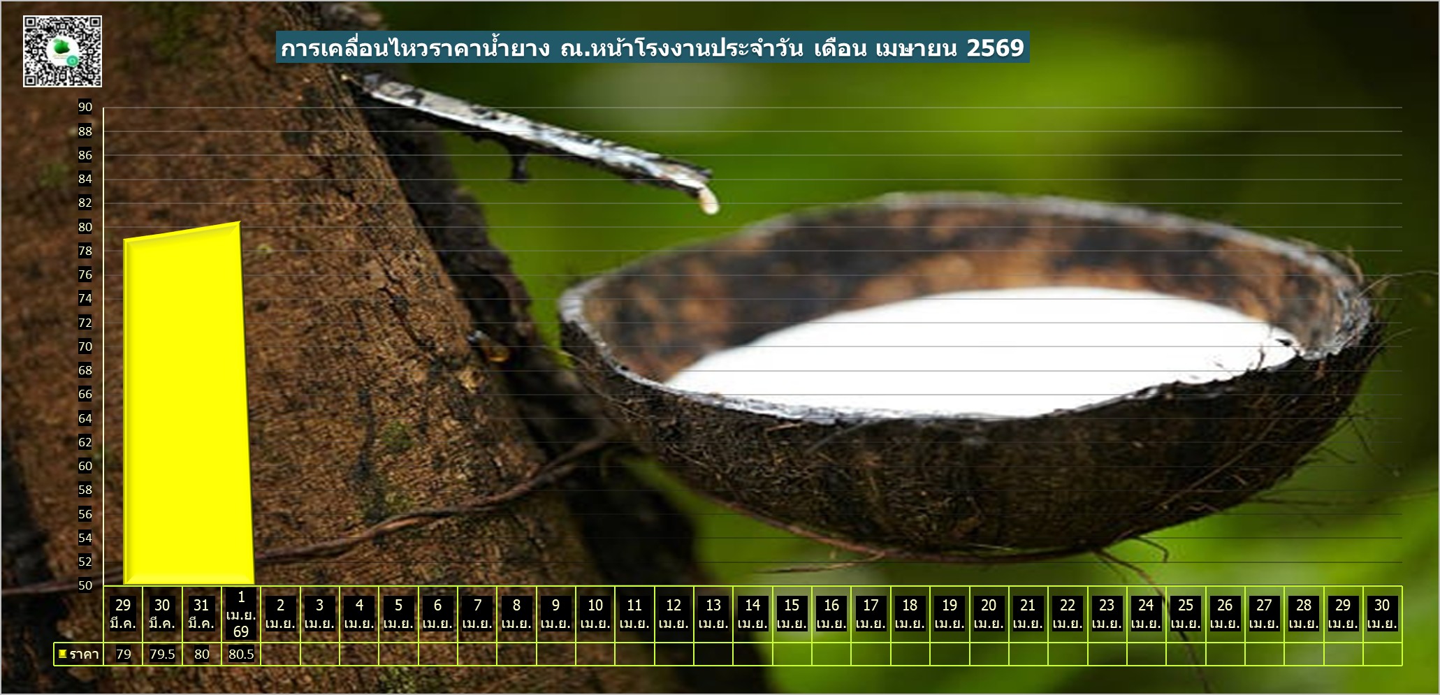 สรุปราคาน้ำยางโรงงานและลานท้องถิ่นทั่วไปประจำวัน พุธ ที่ 1 เมษายน 2569
